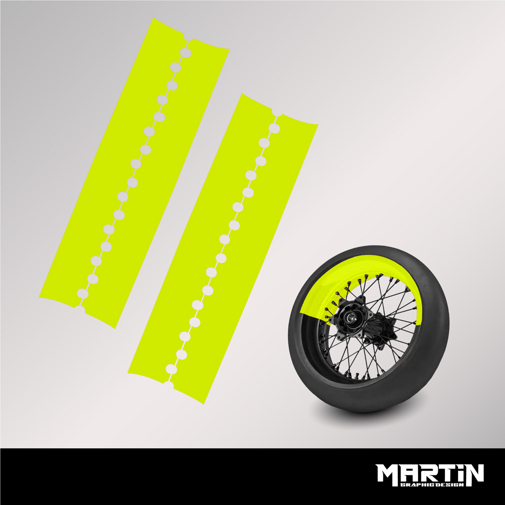 Dai un look unico ai tuoi cerchi con gli adesivi bicolore FLUO di Martin Graphic Design, realizzati con materiali professionali per chi cerca stile, qualità e durata.