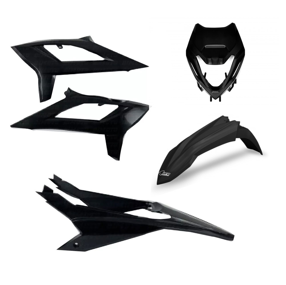 il kit comprende tutto quello che si vede in foto: mascherina per faro led, parafango, convogliatori, codino e fianchetti.